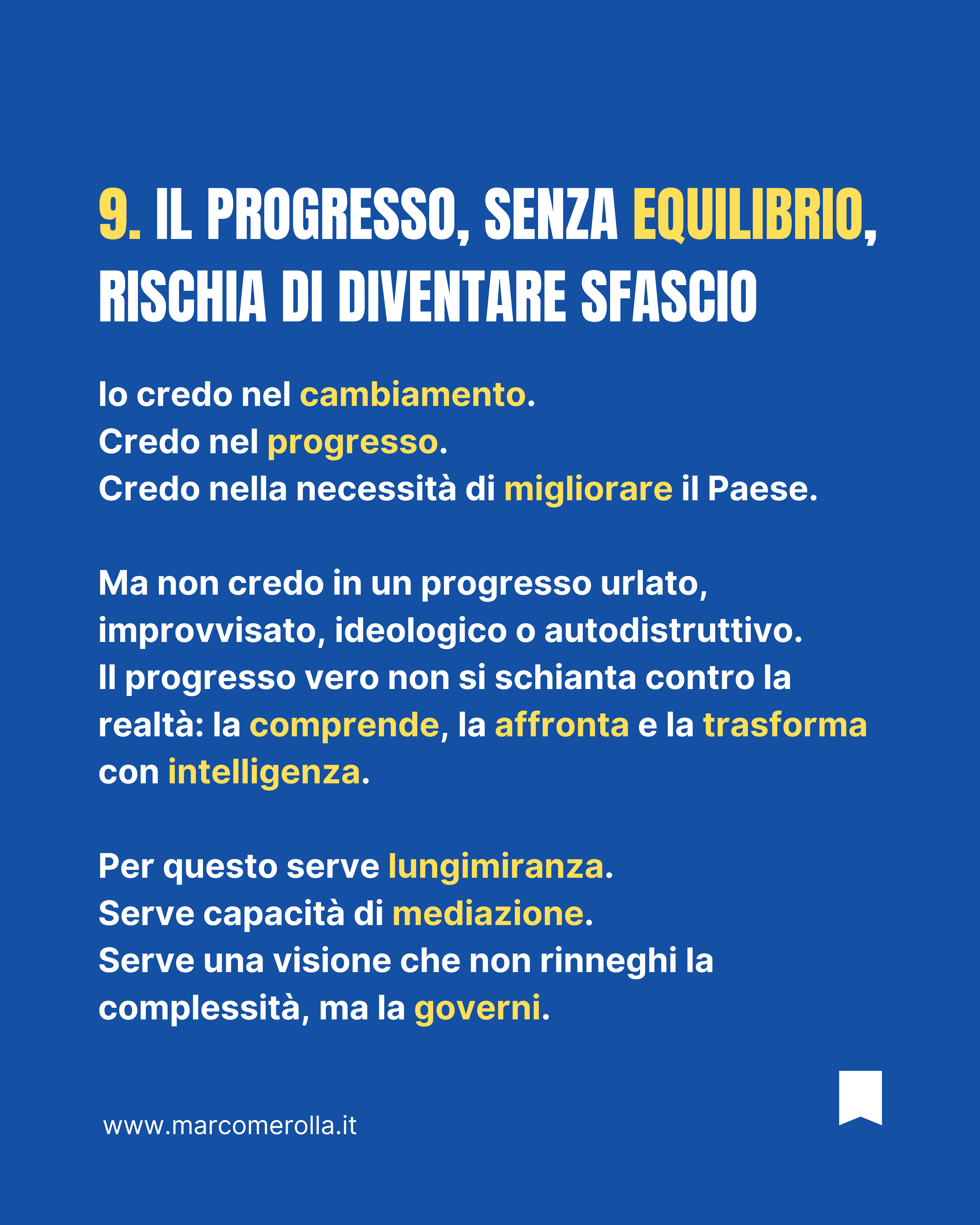 L’equilibrio richiede più intelligenza: tenere insieme libertà e responsabilità, progresso e stabilità, cambiamento e competenza.