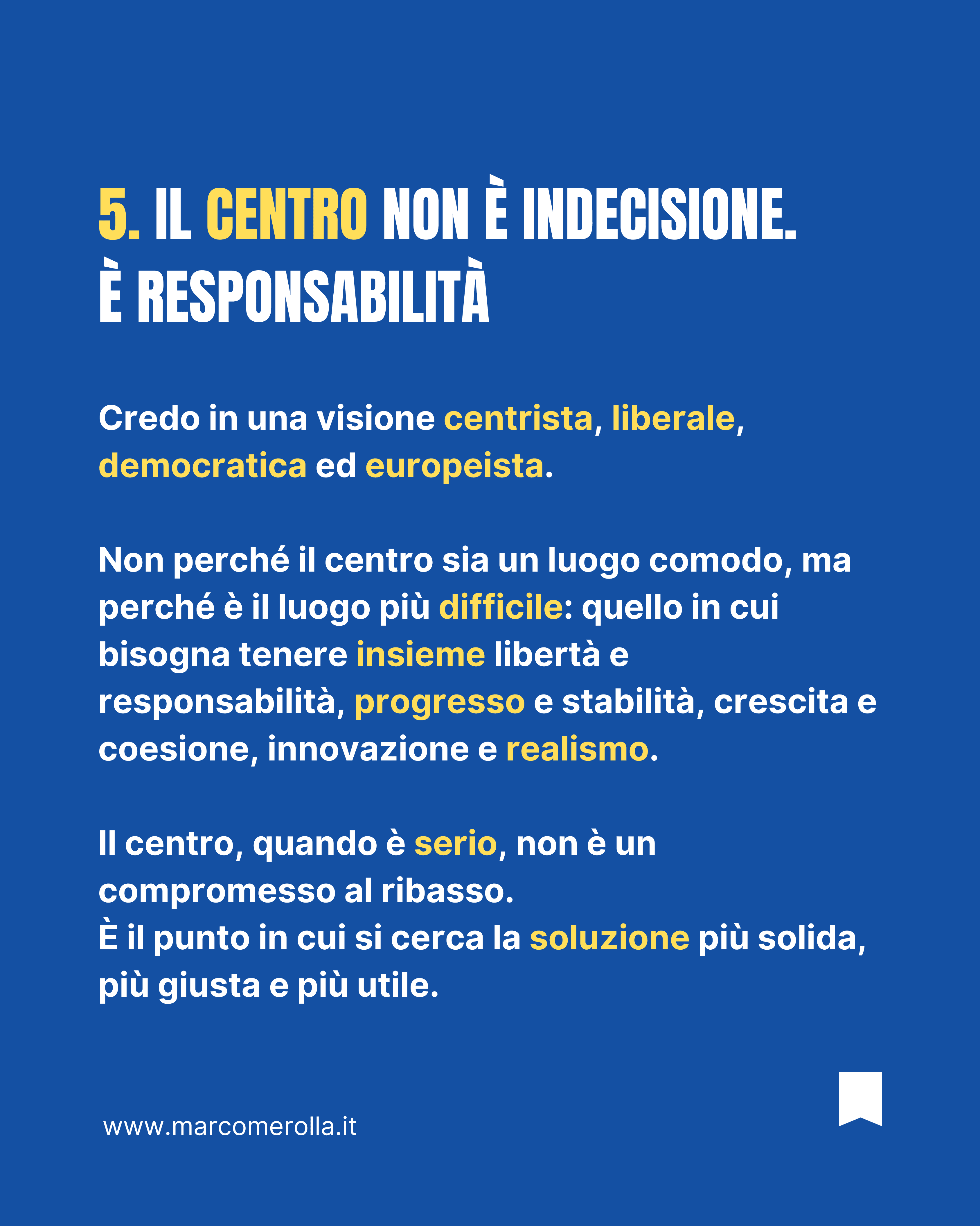 Credo in una visione centrista, liberale, democratica ed europeista. Non come rifugio tiepido, ma come scelta esigente.