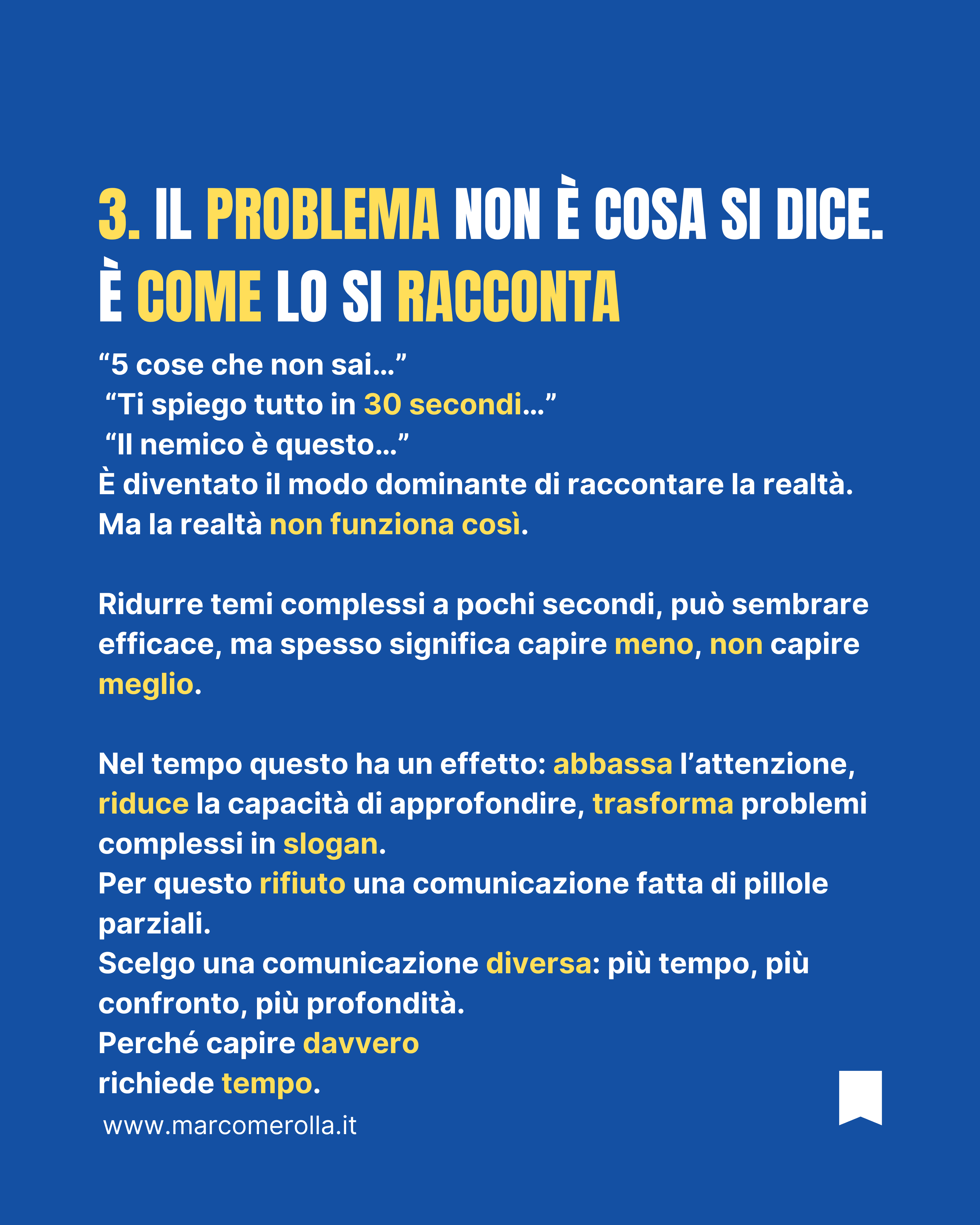 Oggi gran parte del dibattito pubblico è fatto di contenuti brevi, semplificati, immediati.