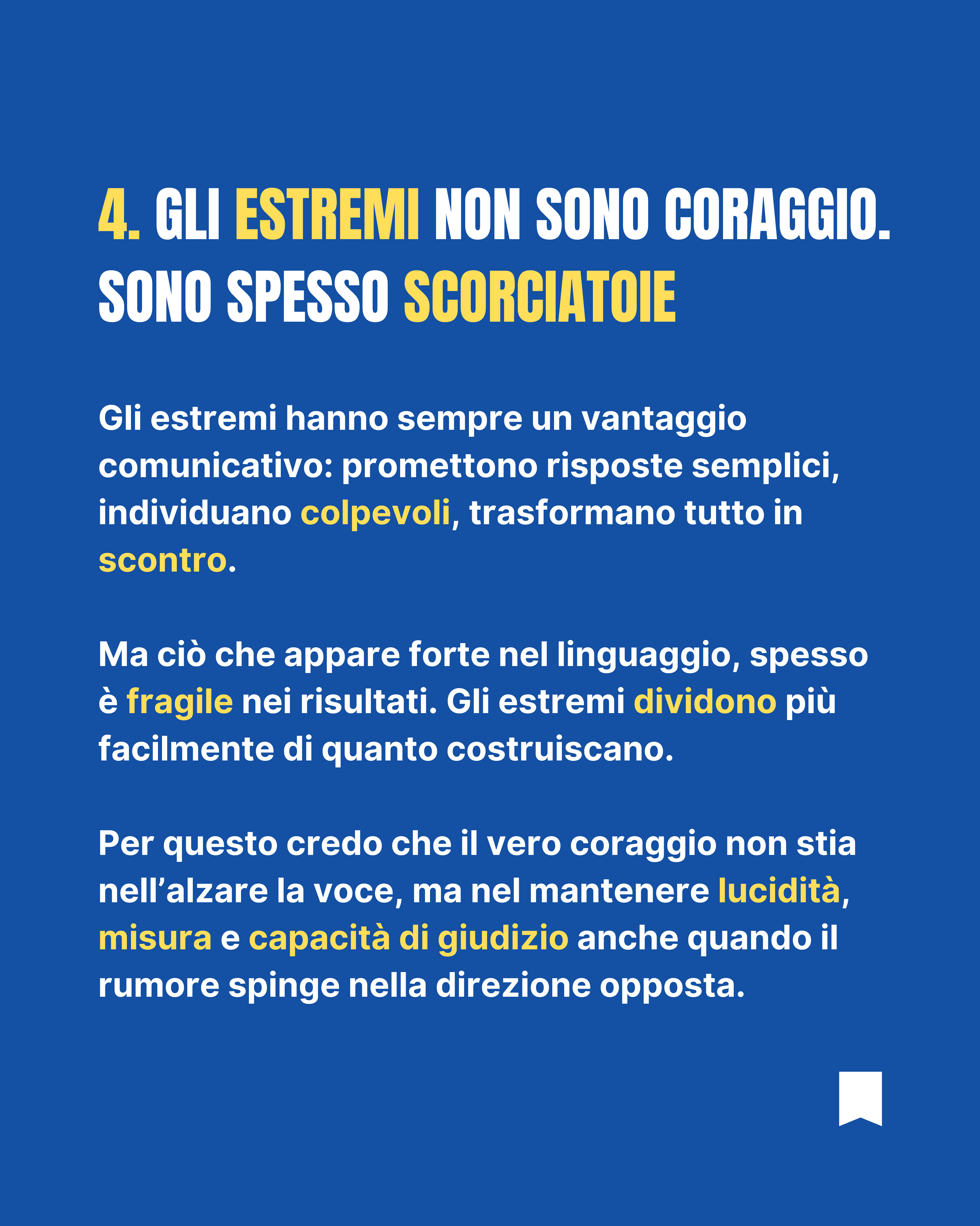 Gli estremi semplificano troppo, dividono troppo e troppo spesso promettono ciò che non regge alla prova della realtà.